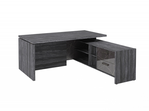 Столешница, бок стола и бок тумбы выполнены из ЛДСП толщиной 38 мм. Цвет - "Древесина Графит". Кромка 2 мм.