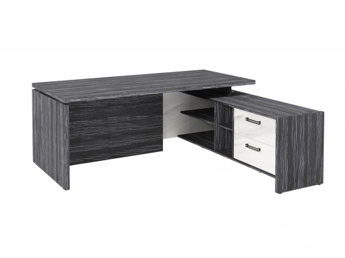 Столешница, бок стола и бок тумбы выполнены из ЛДСП толщиной 38 мм. Цвет - "Древесина Графит". Кромка 2 мм.