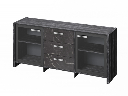 Элемент каталога Тумба трехсекционная с 2 дверьми FI-13-02.G. Древесина Графит/Камень Пьетра Гриджиа черный [1118]