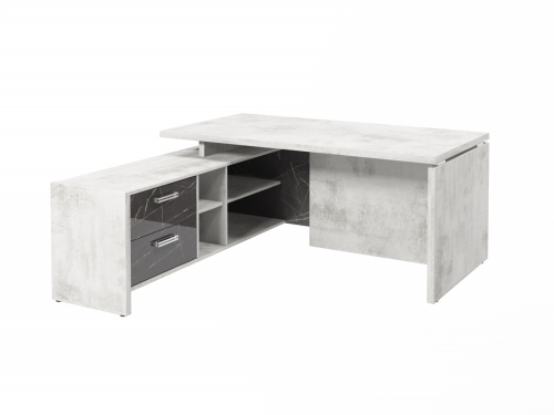 Стол с опорной тумбой FI-117L.GG (L) Хромикс белый/Камень Пьетра Гриджиа черный